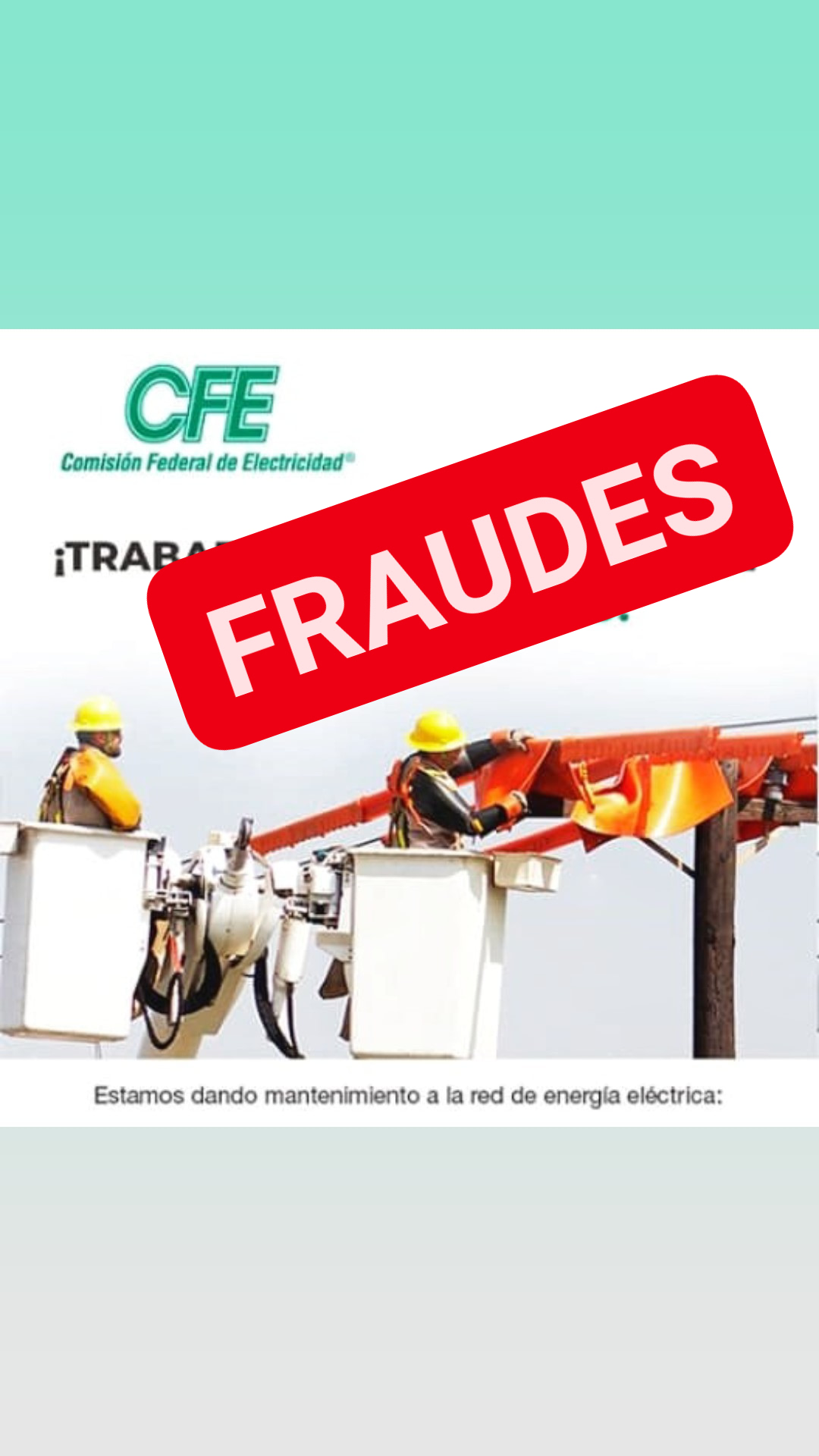 También alertó por supuestos gestores que ofrecen “arreglar adeudos con CFE” a cambio de algún pago por adelantado, por lo que señaló que la única página web de la CFE es https://www.cfe.mx/ y que su única página en Facebook es CFE Nacional y su cuenta oficial en Twitter es @CFEmx.