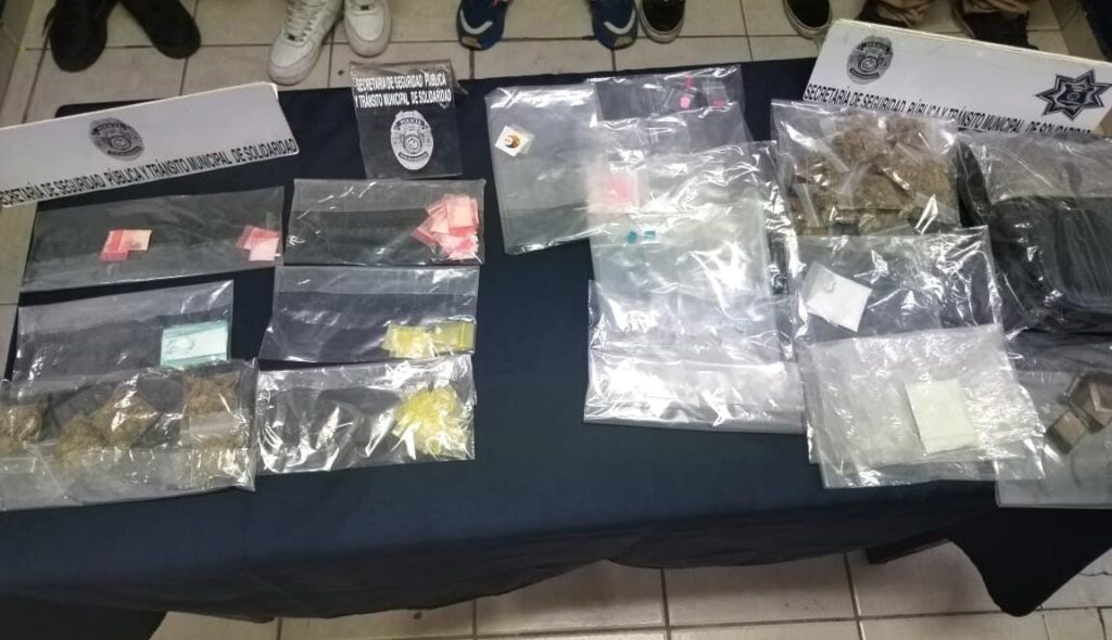 Cuando patrullaban a pie sobre la Quinta Avenida entre calles 10 y 12 la madrugada de hoy, elementos de la Policía Turística, MARINA y la Unidad Canina, se percataron de 5 sujetos que intercambiaban los posibles narcóticos, por lo que se aproximaron y tras una inspección de seguridad les fueron asegurados 18 envoltorios con posible marihuana, 44 con polvo blanco al parecer cocaína, 12 con el posible narcótico llamado éxtasis, 16 con lo que parece la droga llamada piedra y 2 con la posible droga conocida como tusibi.
