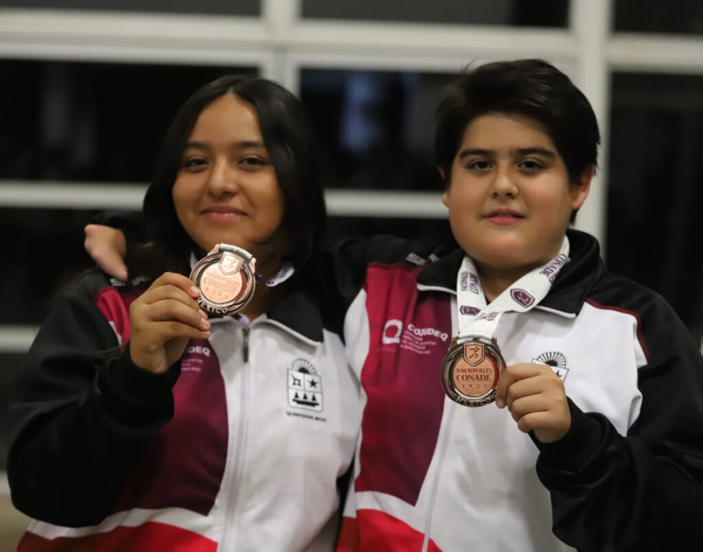 En la misma prueba de pistola de aire Por Equipo Mixto, pero de la categoría 14-15 años de edad, la pareja quintanarroense de Itzayana Osorio Villanueva y Jeshua Escárcega Victorica hicieron su mejor papel para adjudicarse el metal de bronce.