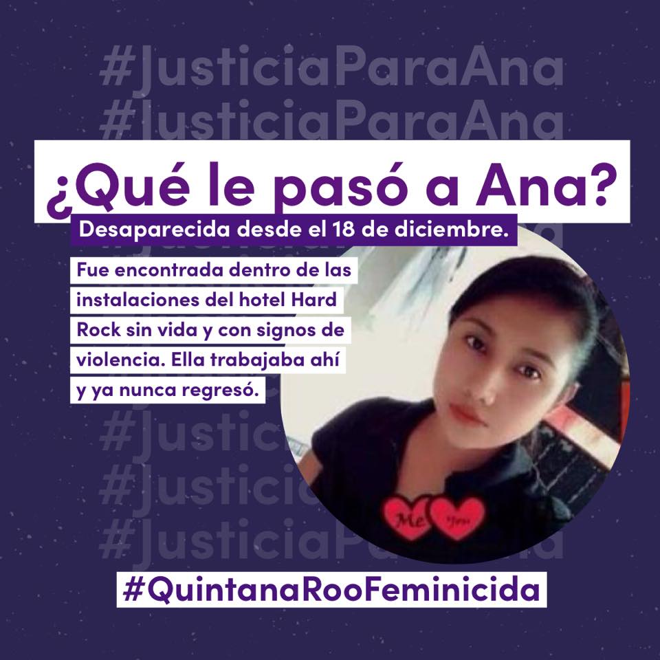 4 años después del feminicidio de Ana Gómez, trabajadora del hotel Hard Rock Riviera Maya, el responsable fue sentenciado a 25 años de cárcel por el Tribunal de Juicio Oral de Playa del Carmen, presidido por el juez Gualterio Geraldo Díaz Jarquín, quien además impuso además una multa de 130 mil 320 pesos, así como la reparación de daños materiales por 650 mil 760 pesos.