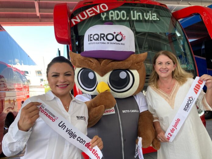 Playa del Carmen, Q. Roo. – “IEQROO y ADO Un viaje con destino al 2 de junio” es la campaña de promoción al voto que a partir de hoy será visible en todas las rutas de transporte foráneo de la empresa Mobility ADO en el territorio de Quintana Roo y que, en alianza con el Instituto Electoral de Quintana Roo promoverán en sus unidades móviles y estaciones de pasajeros el voto libre y secreto.