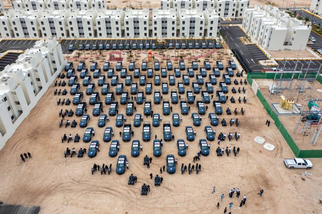 Desde el inicio de la administración en 2021 se ha reforzado la seguridad con 312 unidades policiales de los cuales 174 son patrullas, 96 motos, 42 cuatrimotos. Cerrando este tercer año de gobierno, con 332 unidades, dos de ellas puestas en marcha para atención a la comunidad LGBT, así como un autobús de traslado de elementos.