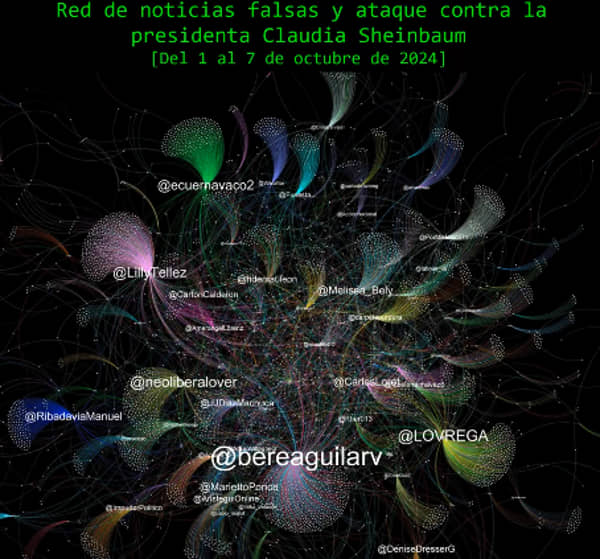 México, 11 de octubre de 2024.- Revelan red de ciberataque contra la Presidenta Claudia Sheinbaum. El maestro Carlos Augusto Jiménez, investigador de la Neointeracción Social, reveló una red artificial de tendencias que tiene como objetivo atacar y desprestigiar a la Presidenta Claudia Sheinbaum, difundiendo noticias falsas.