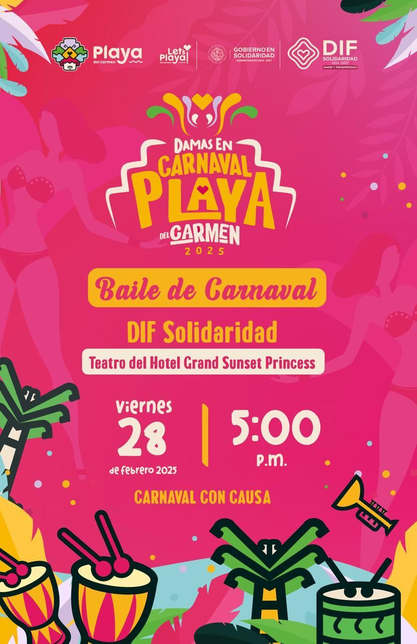 Playa del Carmen, Quintana Roo, a 13 de febrero.- El DIF Solidaridad te invita a participar en “Damas en Carnaval Playa del Carmen 2025”, a realizarse el viernes 28 de febrero a partir de las 5 de la tarde en el teatro del Hotel Grand Sunset Princess, todo lo recaudado será en beneficio de la Casa de Asistencia Temporal (CAT).