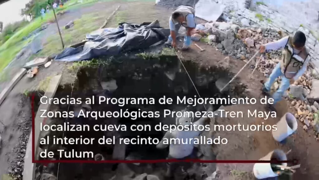 Tulum, Q. Roo (abril 2025) — Un hallazgo sin precedentes ha sido revelado dentro del recinto amurallado de Tulum, una de las zonas arqueológicas más visitadas de México: una cueva funeraria con al menos 15 entierros prehispánicos, entre ellos un infante recién nacido. Este descubrimiento se realizó como parte de los trabajos del Programa de Mejoramiento de Zonas Arqueológicas (PROMEZA) en el contexto del proyecto Tren Maya.