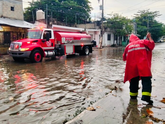 Playa del Carmen, Q. Roo, 4 de octubre de 2025.– Con el propósito de proteger a la población y atender oportunamente las afectaciones derivadas de las lluvias registradas desde ayer, el Gobierno de Playa del Carmen, encabezado por la presidenta municipal Estefanía Mercado, mantiene activo el Operativo Tormenta a través de las secretarías de Protección Civil, Prevención de Riesgos y Bomberos y, de Servicios Públicos Municipales.