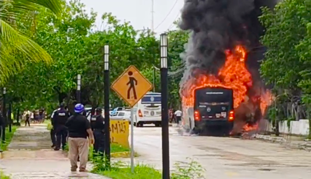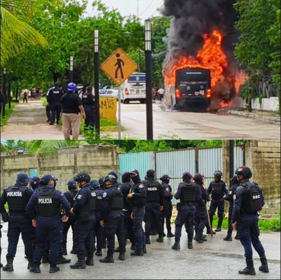 PortadaSEGURIDADQueman camión policial durante operativo en Playa del Carmen; autoridades denuncian agresiones...
