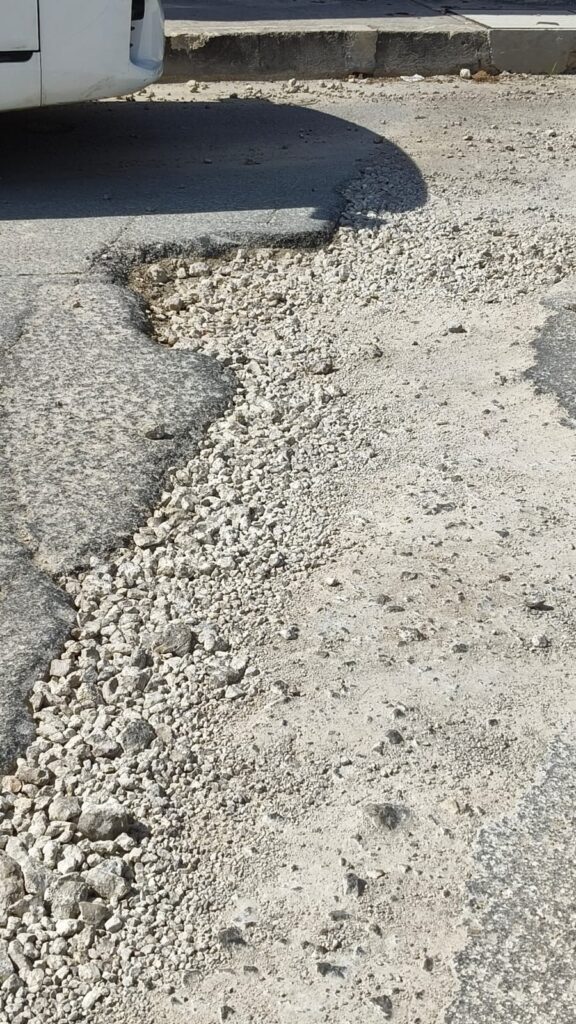 La situación fue denunciada por vecinos y automovilistas que circulan a diario por este tramo, donde el asfalto presenta hundimientos, baches y desniveles que afectan la movilidad y representan un riesgo para motociclistas y peatones.