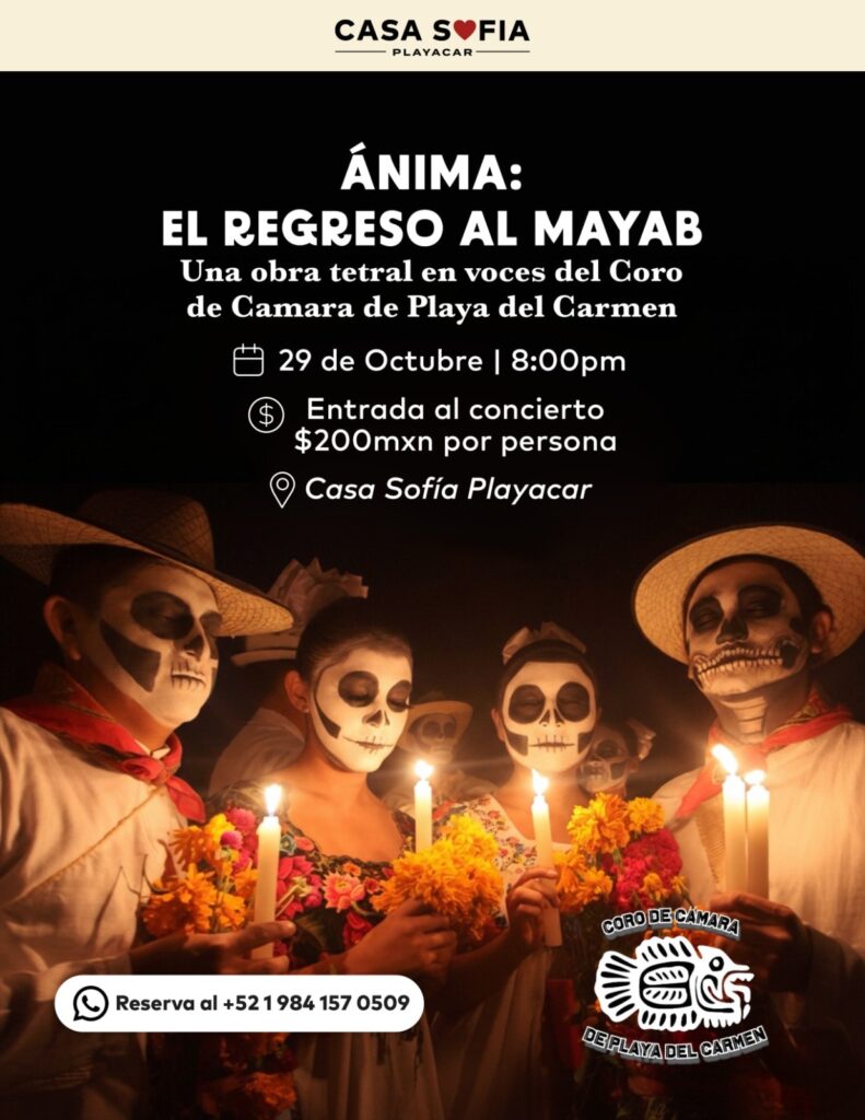 Playa del Carmen, Quintana Roo, lunes 20 de octubre de 2025.— La tradición, la música y las voces en vivo se unirán en una experiencia artística única con la presentación de “Ánima: una historia con música y voces en vivo”, a cargo del Coro de Cámara dirigido por la maestra Ana Huerta, con motivo de las celebraciones por el Día de Muertos.