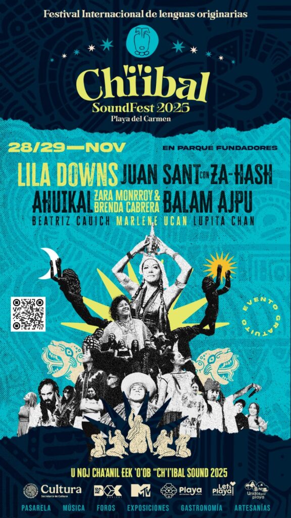 El cierre de las celebraciones será el 28 y 29 de noviembre con el Ch’i’ibal Sound Fest 2025, un encuentro musical que reunirá a artistas de lenguas originarias de México y Guatemala, destacando expresiones indígenas, charlas sobre el papel de las mujeres en las comunidades y el esperado concierto de Lila Downs, reconocida por su compromiso con la diversidad cultural.