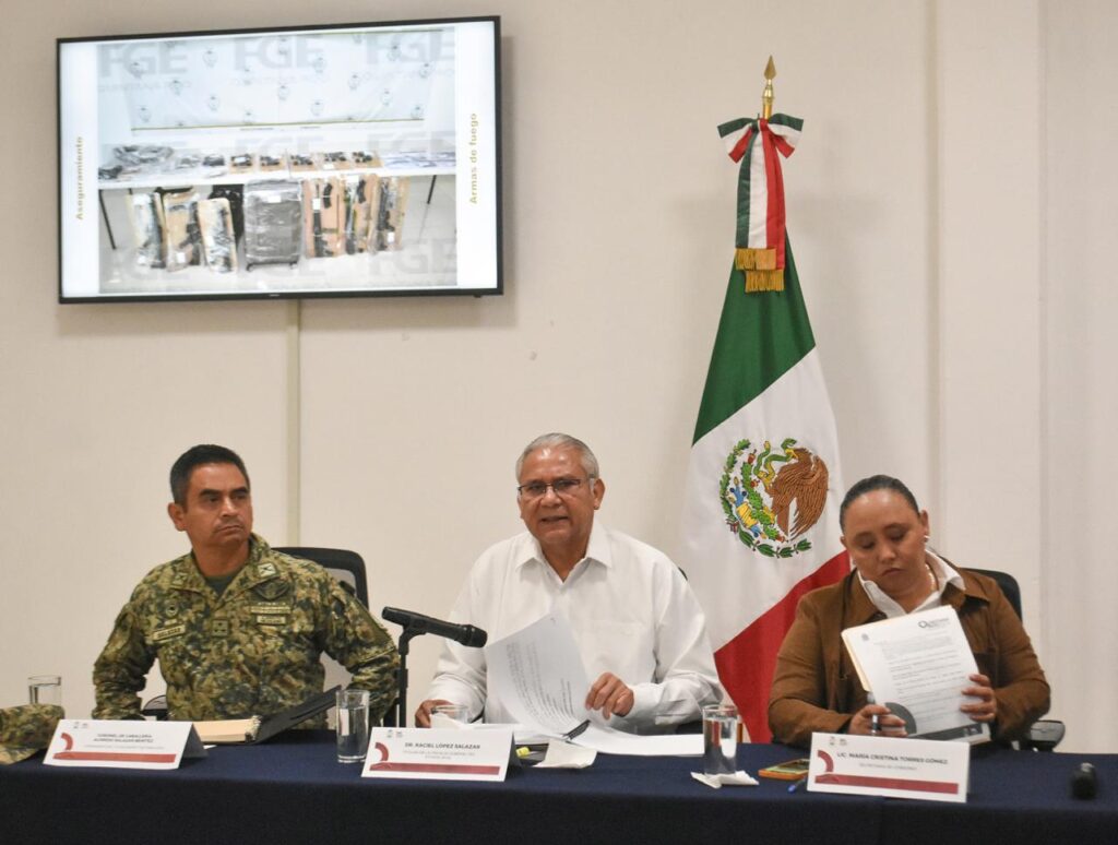 Othón P. Blanco.- El titular de la Fiscalía General del Estado, Raciel López Salazar, dio a conocer en la conferencia de prensa del Gabinete de Seguridad que, en el mes de noviembre, esta Representación Social, en coordinación con la Secretaría de la Defensa Nacional, Guardia Nacional, Secretaría de Marina, Policía Estatal y Policías Municipales, aseguró drogas y detuvo a 94 personas durante el cumplimento de 48 órdenes de cateo, cuatro de ellas en el periodo del 28 al 30 de noviembre del año en curso.
