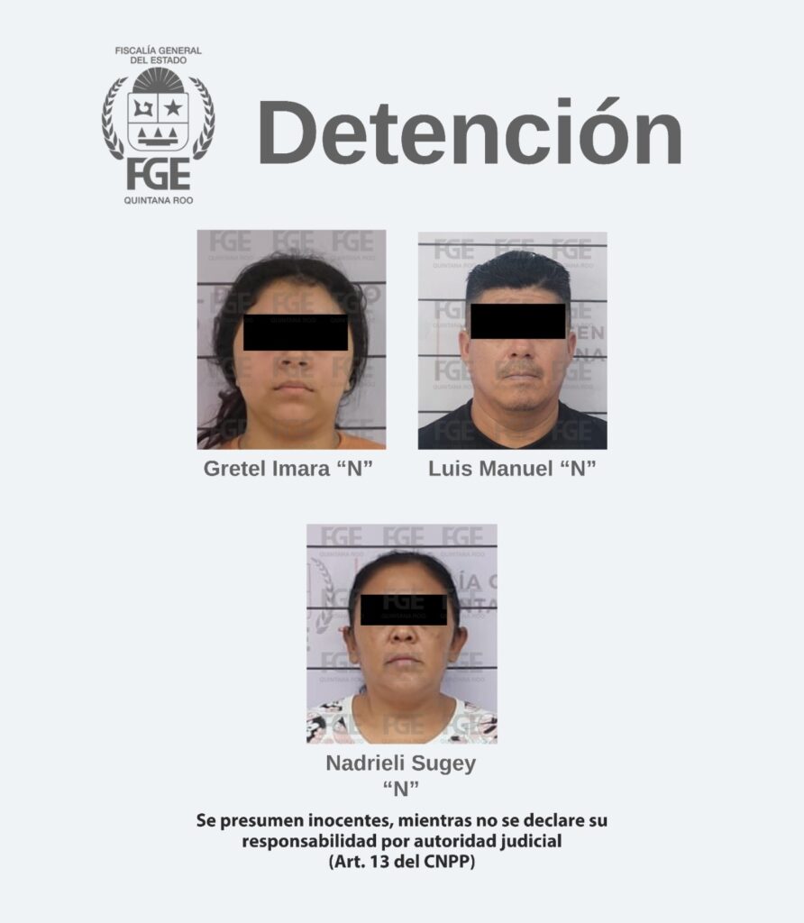 En las acciones recientes, tres en el municipio de Benito Juárez y uno en Othón P. Blanco, se logró la detención de Luis Manuel “N”, Gretel Imara “N” y Nadrieli Sugey “N”, a quienes les aseguraron hierba verde y seca similar a la marihuana, además de fragmentos cristalinos con características similares al cristal.
