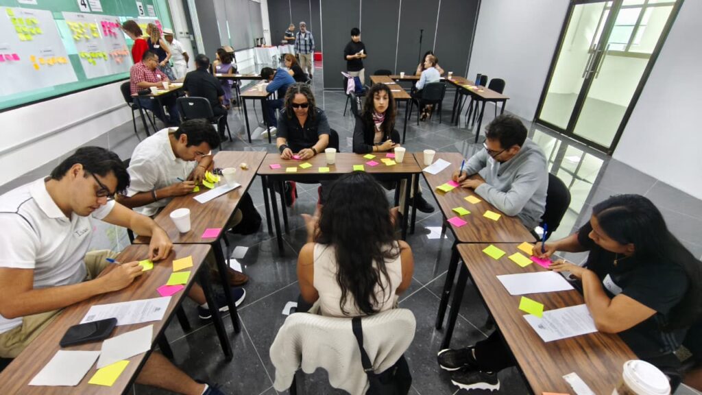 Para guiar el diálogo, se empleó la metodología World Café, utilizada a nivel internacional para generar inteligencia colectiva. Esta dinámica permitió conversaciones abiertas, estructuradas y orientadas a resultados en cinco mesas temáticas: