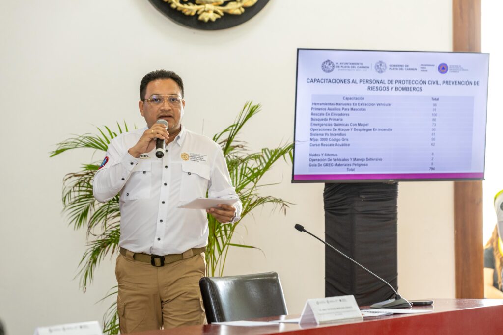 Playa del Carmen, Quintana Roo, 15 de diciembre de 2025.- En el marco de la estrategia de seguridad impulsada por el gobierno de la presidenta municipal Estefanía Mercado, se llevó a cabo la segunda sesión del Consejo Municipal de Protección Civil, Prevención de Riesgos y Bomberos, para presentar los resultados del trabajo realizado de junio a noviembre, orientados a fortalecer la prevención, mejorar la capacidad de respuesta y proteger la vida, la integridad y el patrimonio de las familias de Playa del Carmen.