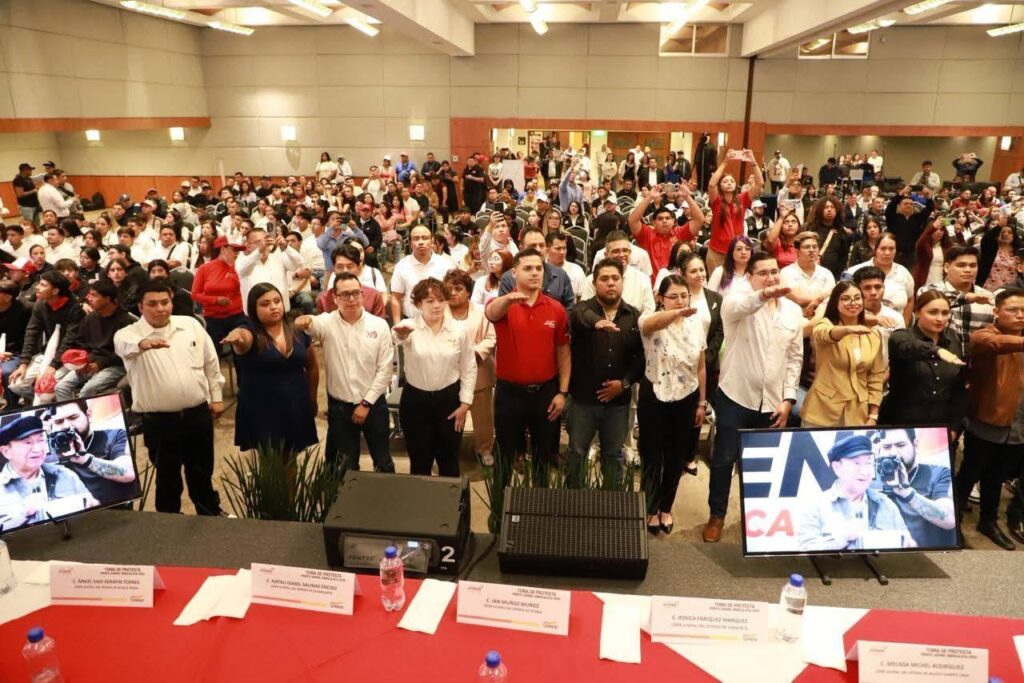 Por su parte, EDMUNDO QUIROZ CADENA, al rendir protesta como dirigente del Frente Juvenil Sindicalista, aseguró que inicia una nueva etapa para la juventud dentro del sindicalismo mexicano.